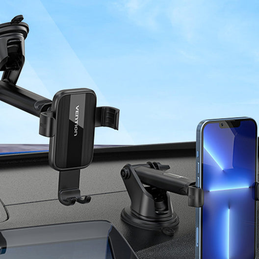 Soporte de teléfono para automóvil con sujeción automática con ventosa tipo cuadrado negro